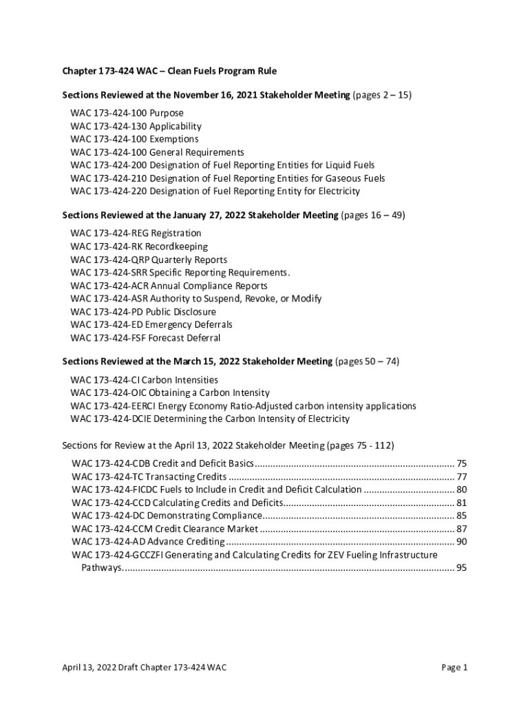 Chapter173424WACCleanFuelsProgramRule SectionsReviewedattheNovember16,2021StakeholderMeeting(pages215) WAC173424100Purpose WAC173424130Applicability WAC173424100Exemptions WAC173424100GeneralRequirements