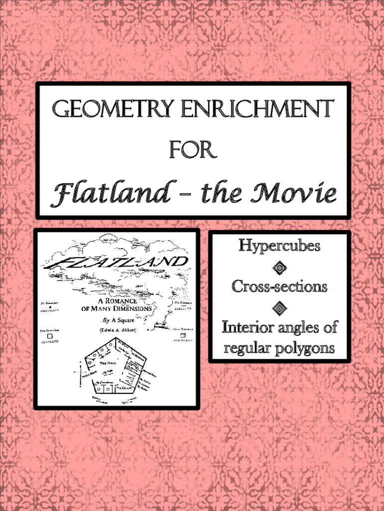 Geometry Enrichment flatland the Movie Hypercubes Cross-sections Interior angles of regular polygons Mary Carr, 2013 www.teacherspayteachers.com/Store/MaryCarrFlatlandFlatland, A Journey of Many Dimensions
