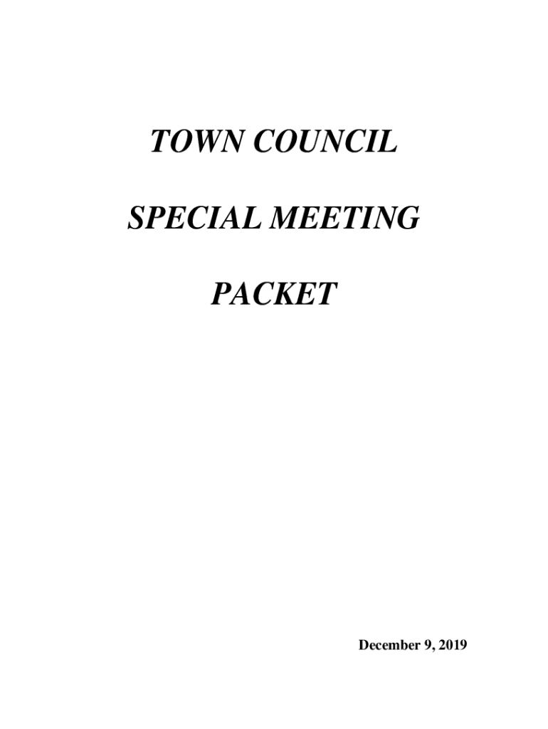 TOWN COUNCIL SPECIAL MEETING PACKET December 9, 2019Town CouncilSpecial MeetingAgendaMonday, December 9, 2019, Town Hall, Council Chambers 450 So. Parish Avenue 7:00 PM MISSION Statement mission of