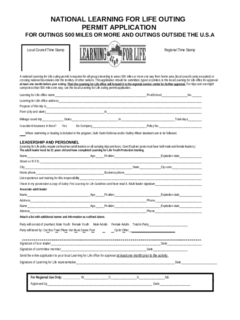 What is www.pdffiller.com89220--learning-for Online learning for life outing permit 500 miles or ... - gato-docs its txstate Form?