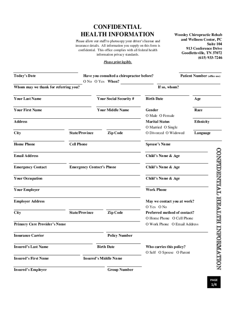 CONFIDENTIAL HEALTH INFORMATION Please allow our staff to photocopy your driver's license and insurance details. All information you supply on this form is confidential. This office complies with