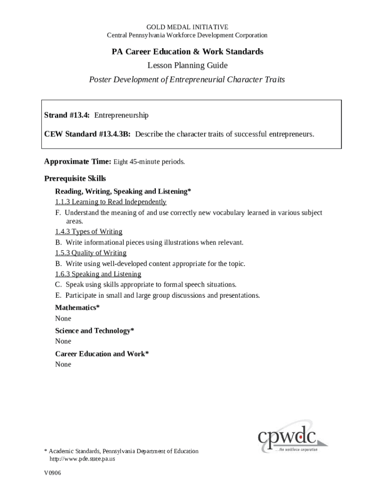 How to fill out Poster Development of Entrepreneurial Character Traits. Pennsylvania Career Education and Work Standards