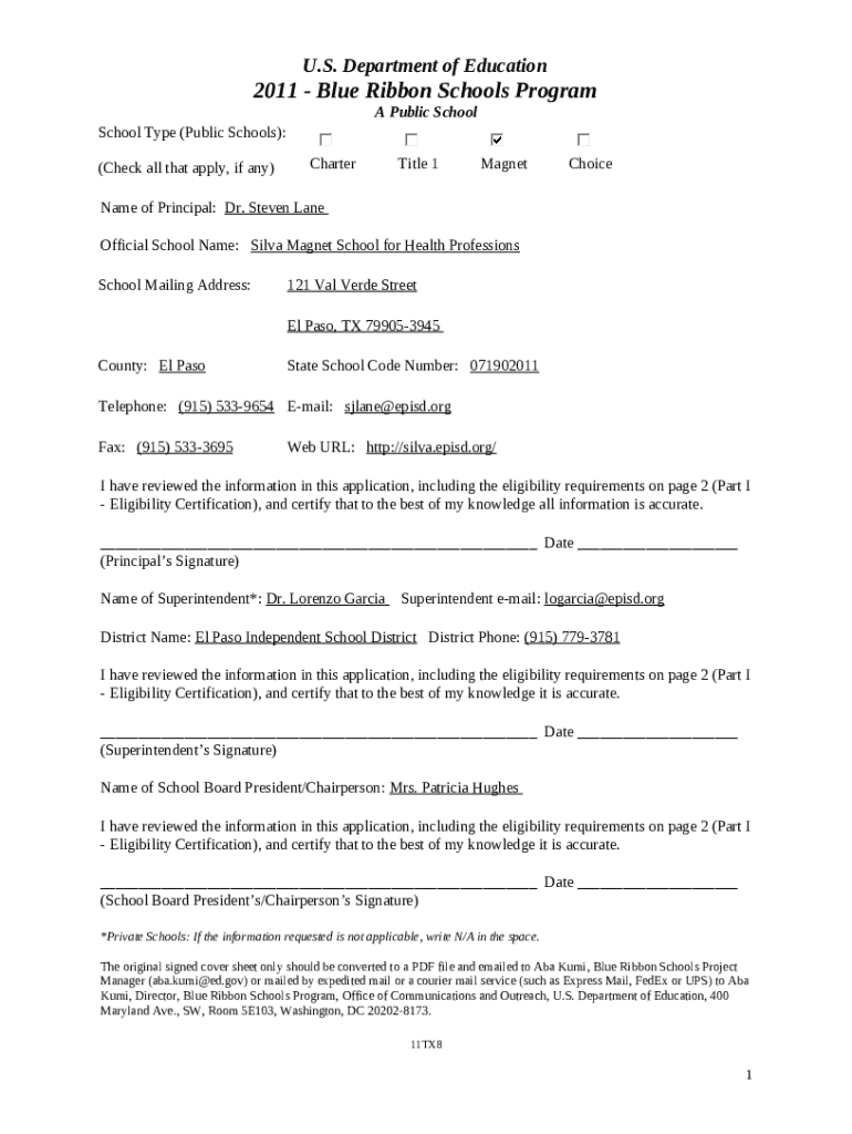 Instructions for the form nationalblueribbonschools.ed.govwp-contentU.S. Department of Education 2011 - Blue Ribbon Schools Program - www2 ed