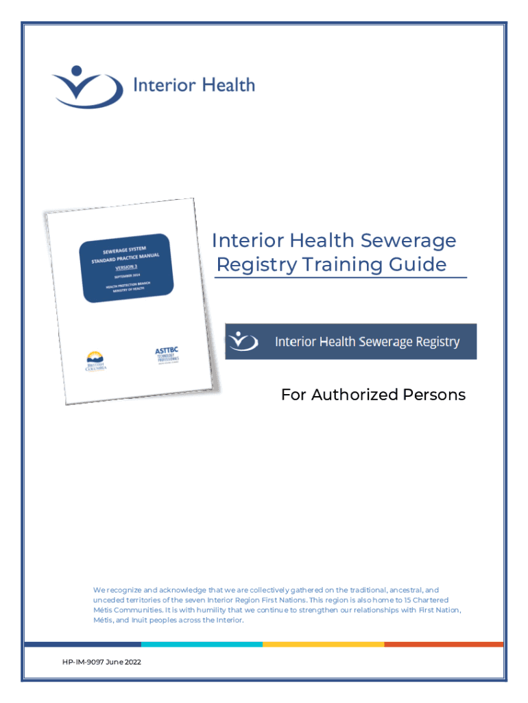 Interior Health Sewerage Registry Training Guider Authorized Persons recognize and acknowledge that we are collectively gathered on the traditional, ancestral, and needed territories of the seven