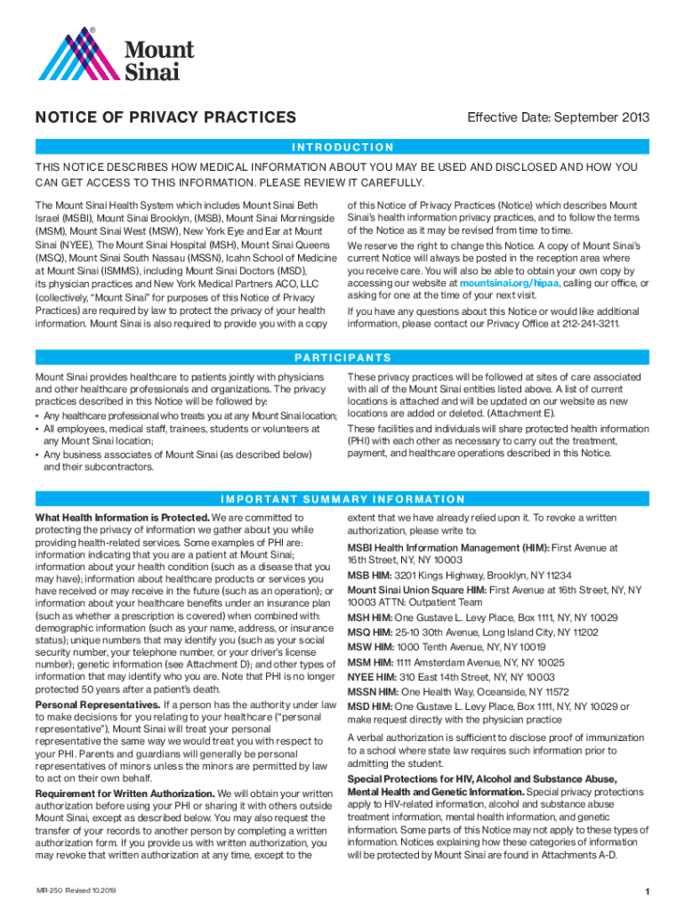 NOTICE OF PRIVACY PRACTICESEffective Date: September 2013INTRODUCTION THIS NOTICE DESCRIBES HOW MEDICAL INFORMATION ABOUT YOU MAY BE USED AND DISCLOSED AND HOW YOU CAN GET ACCESS TO THIS INFORMATION.