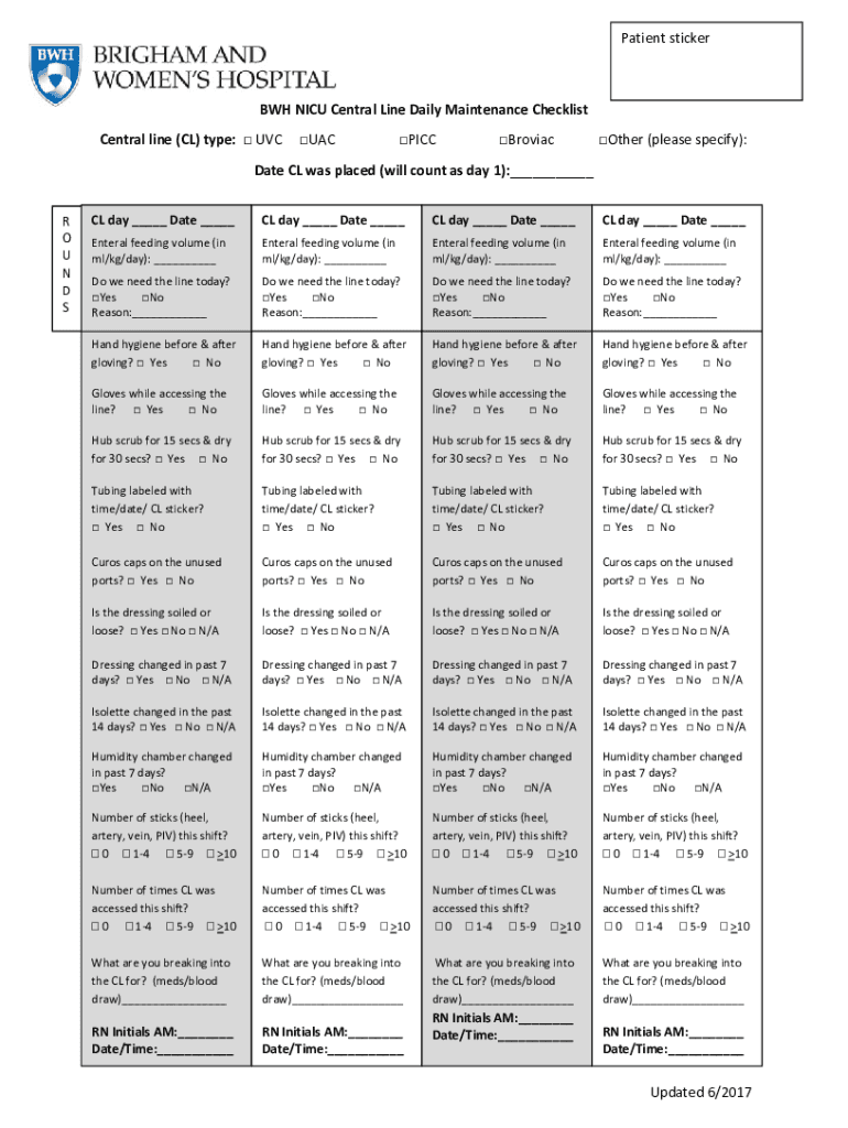 Get the free www.brighamandwomens.orgassetsBWHBWH NICU Central Line Daily Maintenance Checklist C...