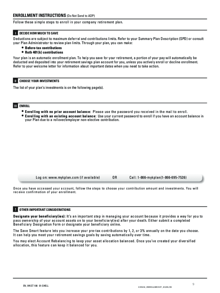 ENROLLMENT INSTRUCTIONS (Do Not Send to ADP) Follow these simple steps to enroll in your company retirement plan. DECIDE HOW MUCH TO SAVEDeductions are subject to maximum deferral and contributions