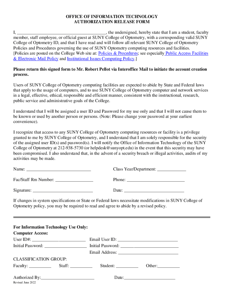 Get the free OFFICE OF INFORMATION TECHNOLOGY AUTHORIZATION RELEASE FORM