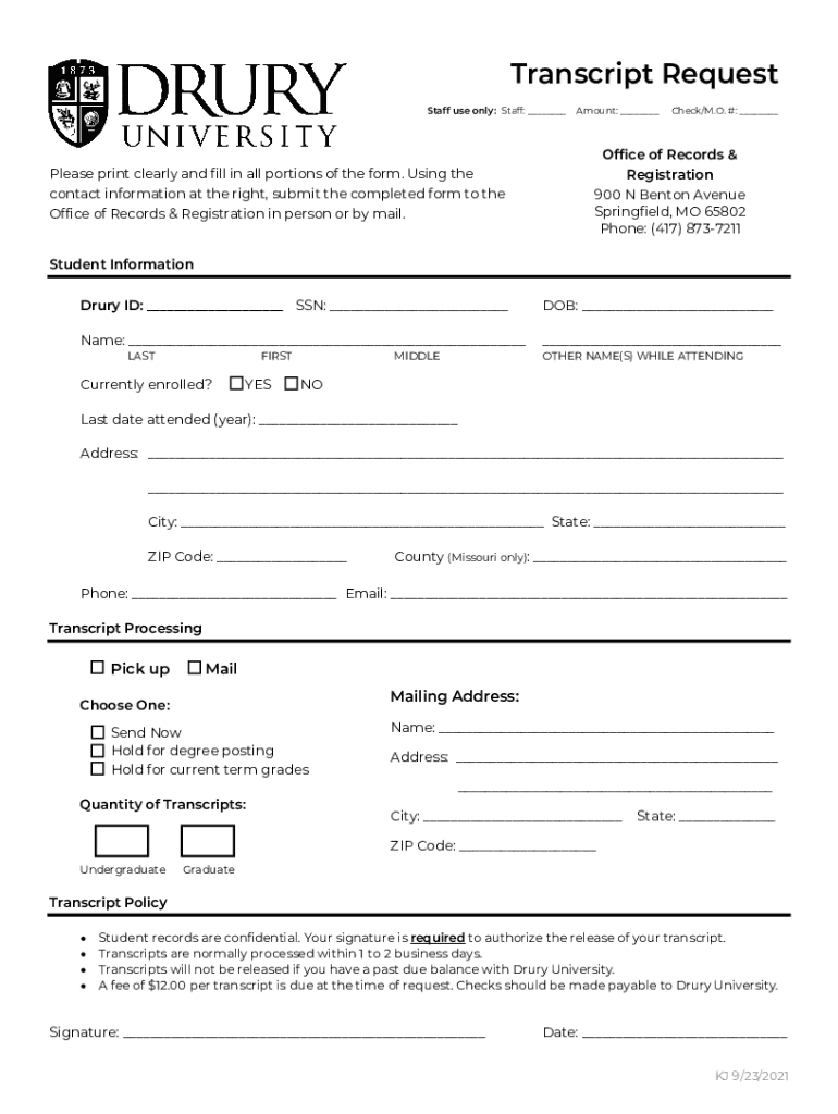 Individuals who need to obtain official transcripts of their academic records from educational institutions are required to file a transcript request form.
