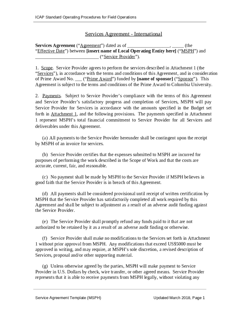 SERVICES AGREEMENT Agreement ICANN PTI Effective Party IANA ARTICLE I ... template instructions