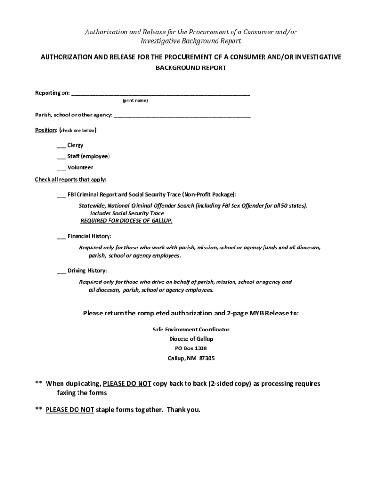 Authorization and Release for the Procurement of a Consumer and/investigative Background Report AUTHORIZATION AND RELEASE FOR THE PROCUREMENT OF A CONSUMER AND/OR INVESTIGATIVE BACKGROUND REPORT Reporting