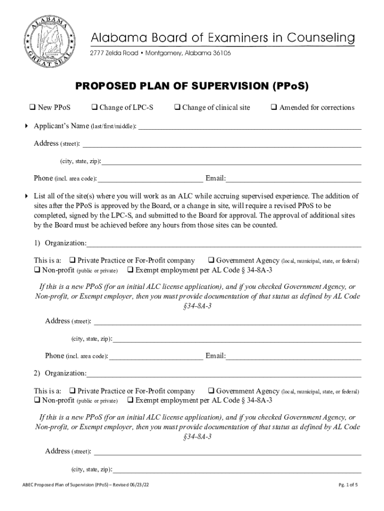 AL Board of Examiners in Counseling Proposed Plan of Supervision (PPoS) 2022-2026 free printable template
