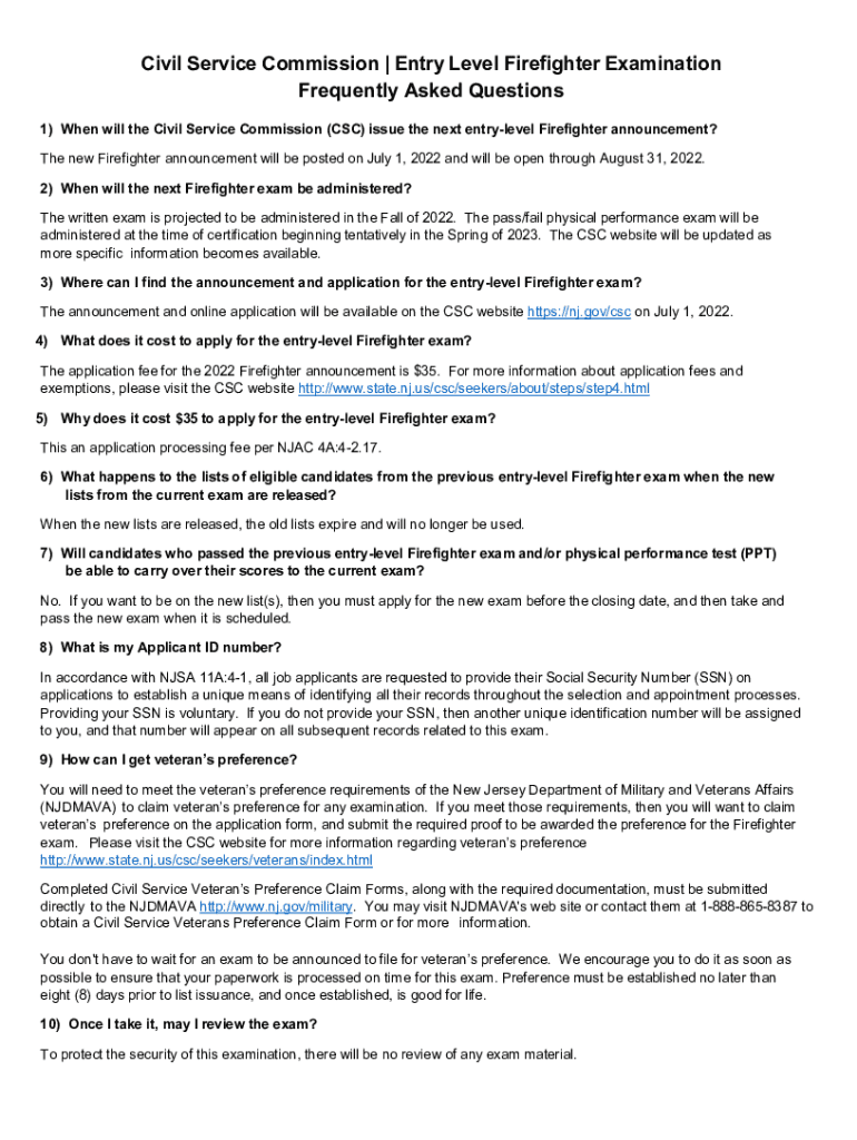 The form wwwstatenjussafetyfirefighterstitlescivil service commissionfirefighters can be filled out online or submitted in person at the Civil Service Commission office.