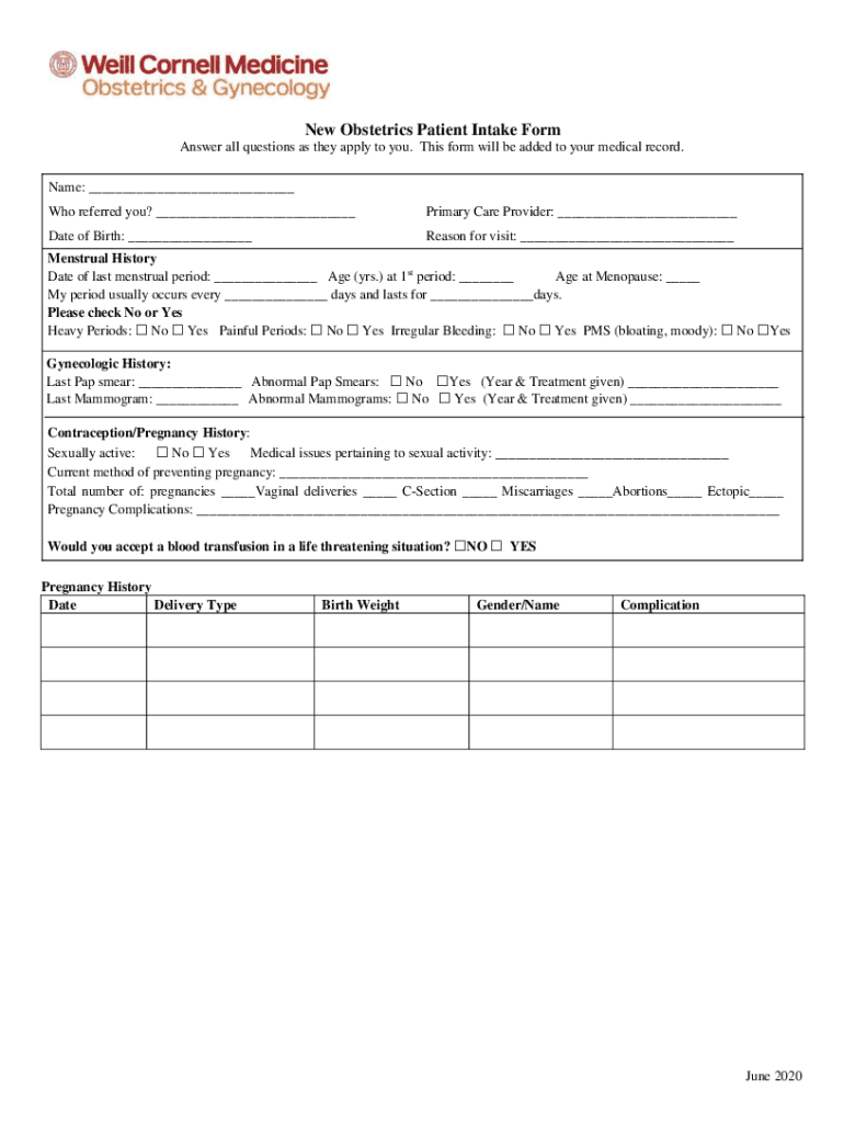 How to fill out obgynweillcornellorgsitesdefaultnew obstetrics patient intake