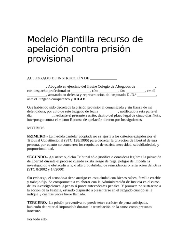 Template www.abogados10.netrecurso-de-apelacionCmo redactar un recurso de apelacinModelo y ejemplo instructions
