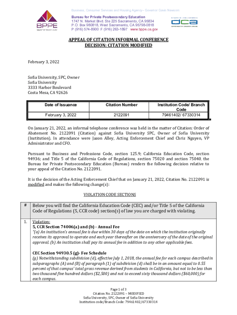 Get the free Bureau for Private Postsecondary Education - Sofia University - Appeal of Citation I...
