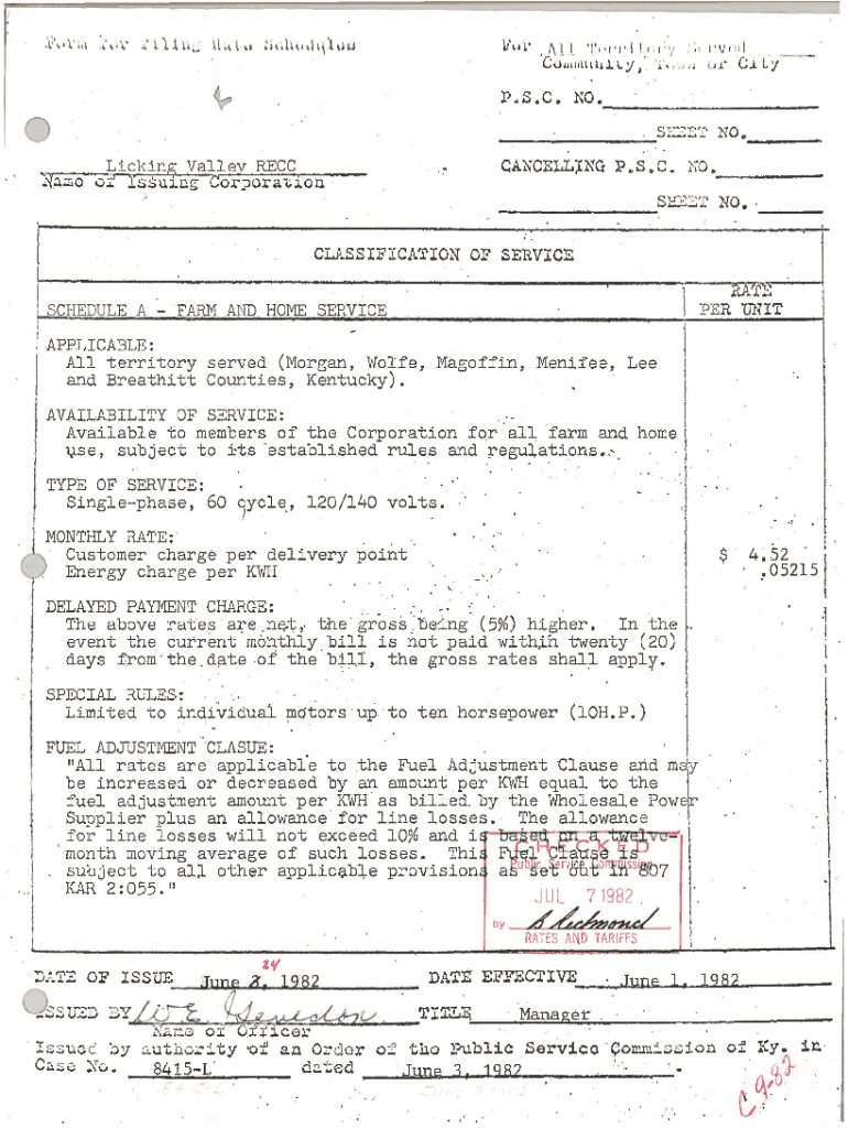 Not IssuingCANCELLNGCorporaionP. SoC. NO.CLASSIFICATION OF SERVICE.r...::SCHEDULE FARM AND HOME SERVICE PER 1JNITAPPLICABLE: All territory served (Morgan, Wolfe, Coffin, Menifee, Lee and Breathing