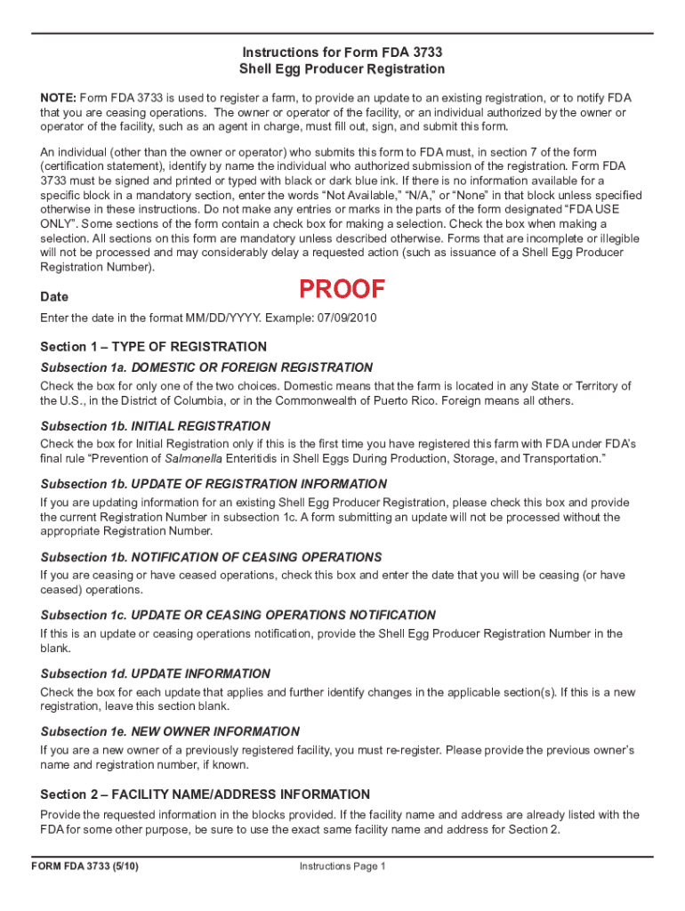 Get the free Instructions for Form FDA 3733 Shell Egg Producer Registration