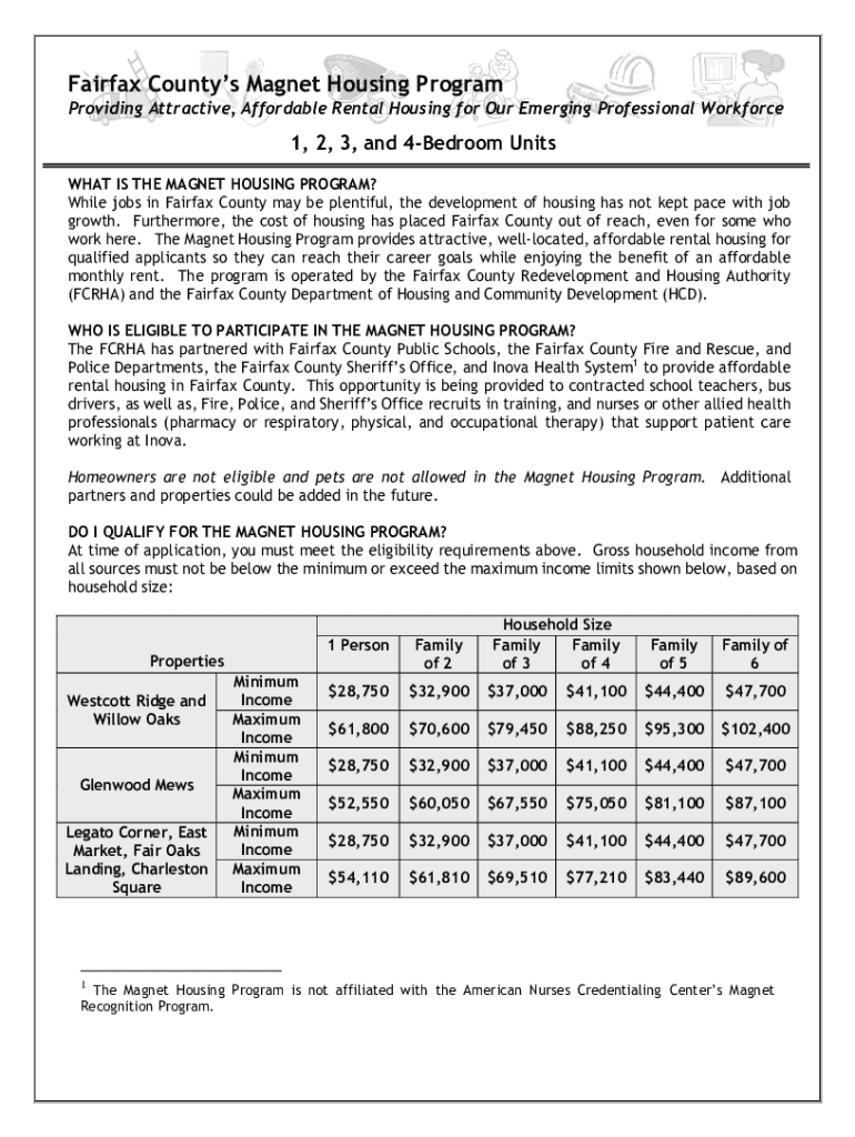 Fairfax Counties Magnet Housing Program Providing Attractive, Affordable Rental Housing for Our Emerging Professional Workforce1, 2, 3, and 4Bedroom Units WHAT IS THE MAGNET HOUSING PROGRAM? While