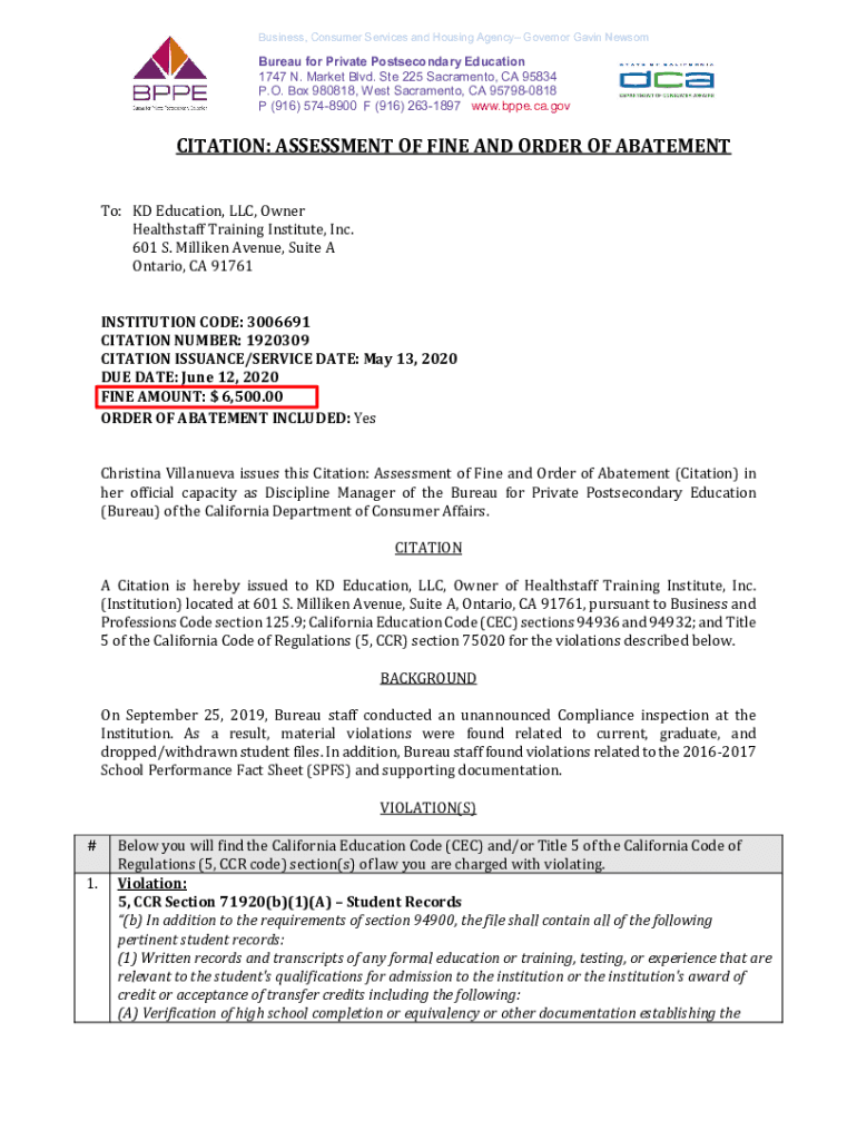 Business, Consumer Services and Housing Agency Governor Gavin NewsomBureau for Private Postsecondary Education 1747 N. Market Blvd. Ste 225 Sacramento, CA 95834 P.O. Box 980818, West Sacramento, CA