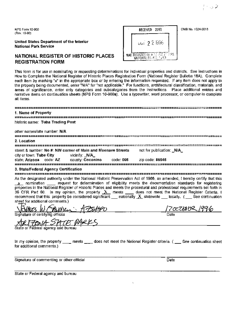 NPS Form 10900 (Rev. 1090)RECEIVED 2280United States Department of the Interior National Park Service 221996NATIONAL REGISTER OF HISTORIC PLACES REGISTRATION FORM0MB No. 10240018NAT REGISTER Or Holistic