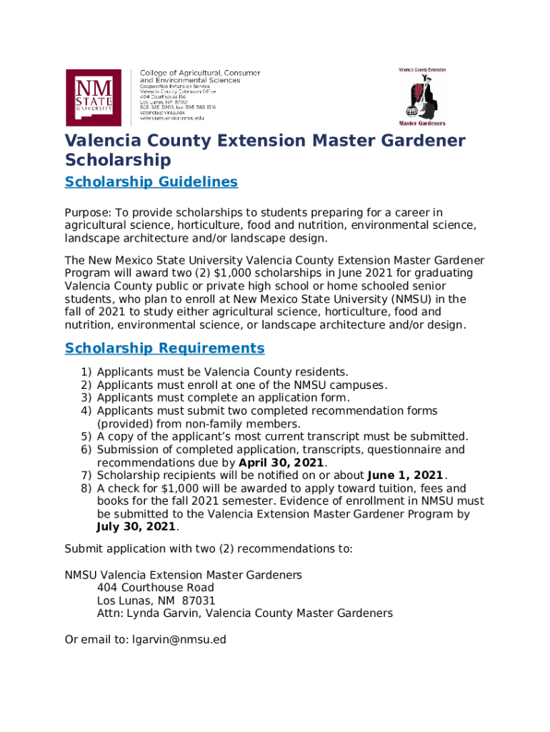 Instructions for the news.nmsu.edufolderarchivenews-archiveValencia County Master Gardeners present four scholarships ... form