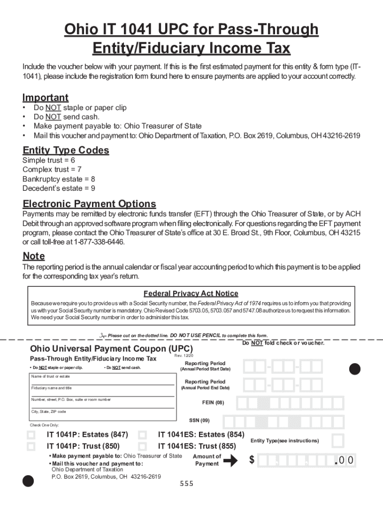 Ohio IT 1041 UPC for Walkthrough Entity/Fiduciary Income Tax Include the voucher below with your payment. If this is the first estimated payment for this entity & form type (IT1041), please include