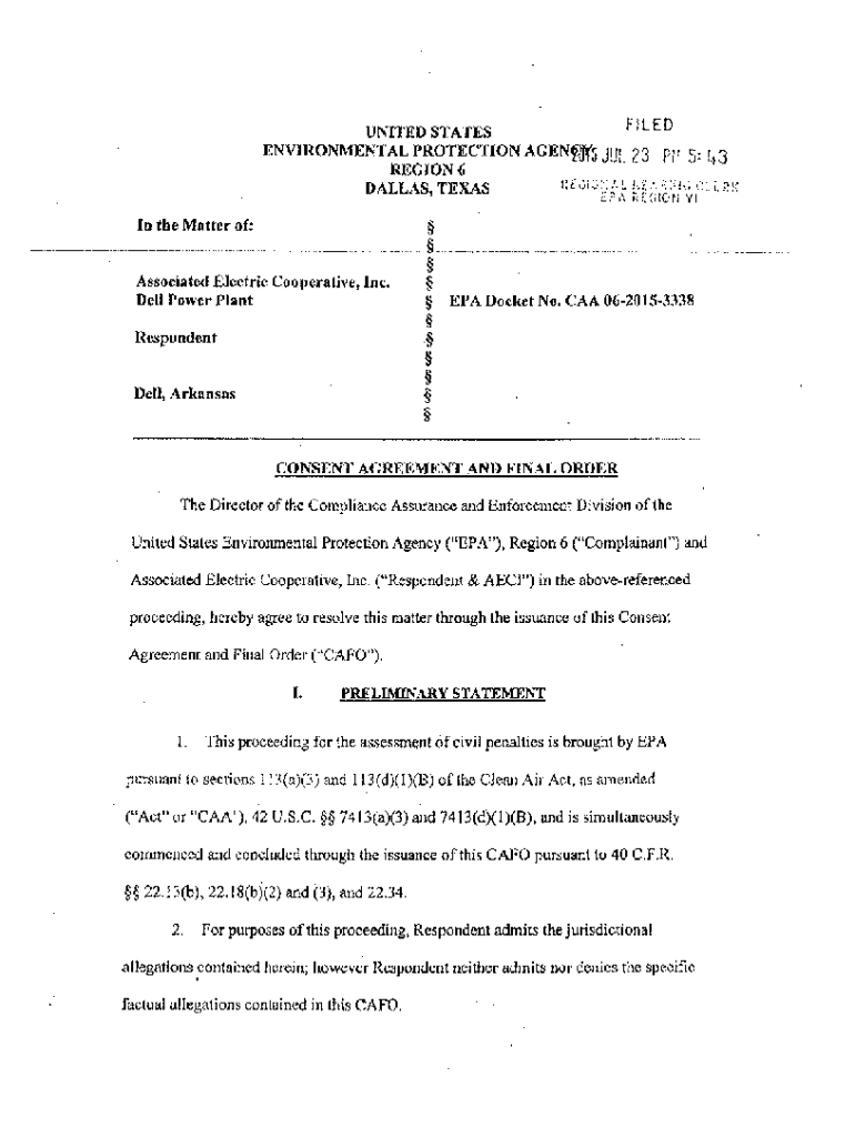 FILED UNITED STATES ENVIRONMENTAL PROTECTION AGEN5 All 23 Pi f 5: 1_, 3 REGION6. DALLAS, TEXAS HE:J::/.l f:;.\'.?JUG :i:OK [P, REGION\'IIN the Matter of: _ Associated Electric Cooperative, Inc. Dell