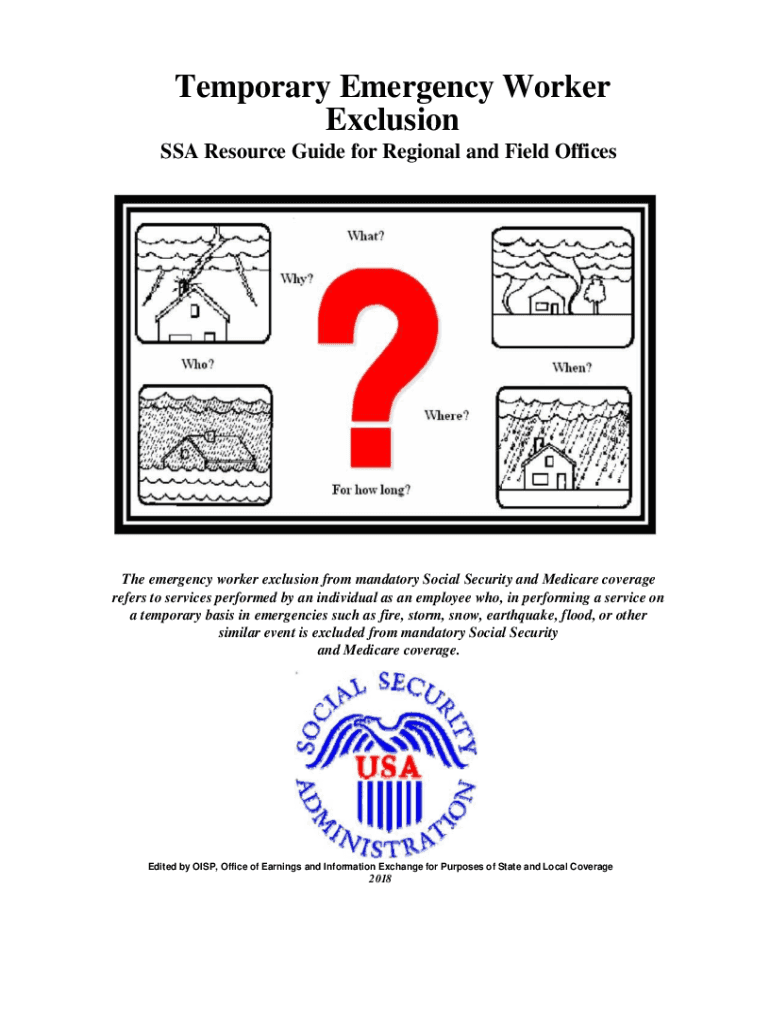 Temporary Emergency Worker Exclusion SSA Resource Guide for Regional and Field Offices emergency worker exclusion from mandatory Social Security and Medicare coverage refers to services performed