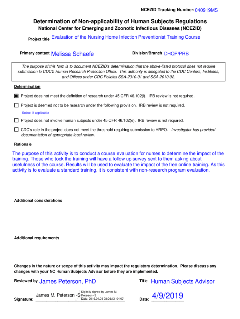 Get the free reginfo.govpublicdoDetermination of Non-applicability of Human Subjects Regulations