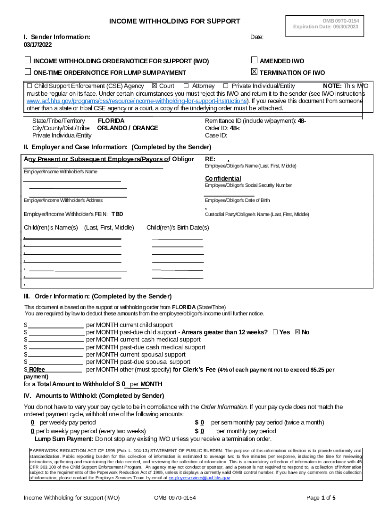 INCOME WITHHOLDING ORDER/NOTICE FOR SUPPORT (IWO) ONE-TIMEIncome Withholding for Support (IWO) , InstructionsIncome Withholding for Support (IWO) , InstructionsIncome Withholding for Support (IWO) , Instructions: frequently asked questions