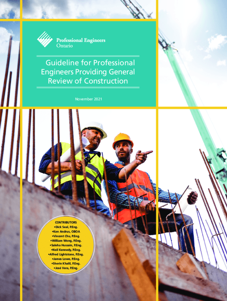 Guideline for Professional Engineers Providing General Review of Construction November 2021CONTRIBUTORS Dick Seal, P. Eng. Ken Andres, OBOE Vincent Chu, P. Eng. William Wong, P. Eng. Sale ha Hussain,