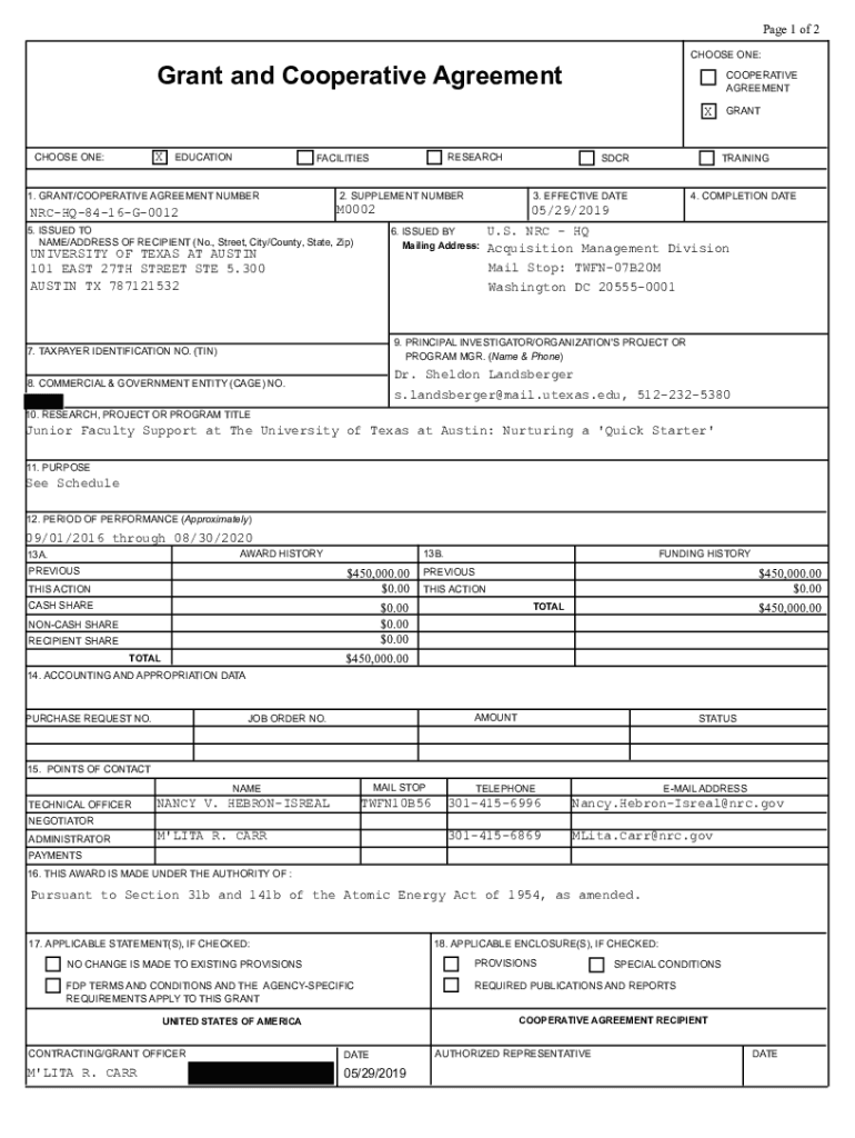 Get the free www.nrc.govdocsML1525Page 1 of 2 Grant and Cooperative Agreement CHOOSE ...