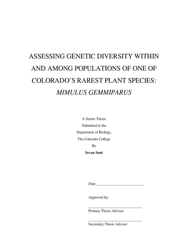 Get the free ASSESSING GENETIC DIVERSITY WITHIN AND AMONG POPULATIONS OF ONE OF COLORADOS RAREST ...