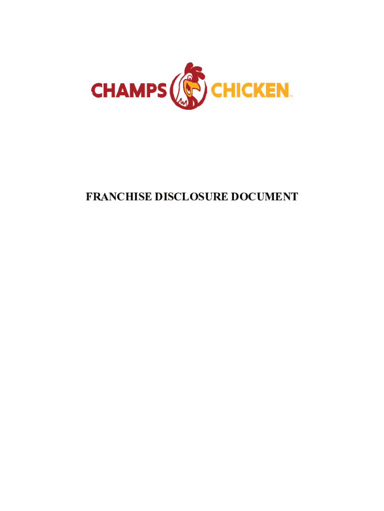FRANCHISE DISCLOSURE DOCUMENTFranchise Disclosure Document Champs Chicken Franchising, LLC A Delaware Limited Liability Company 120 Commerce Drive Holt's Summit, Missouri 65043 (573) 8962500 sjb@pfsbrands.com