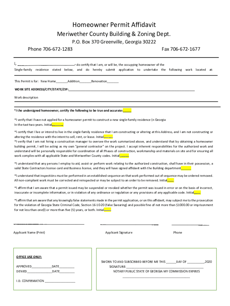 Edit your homeowner permit affidavit form online
