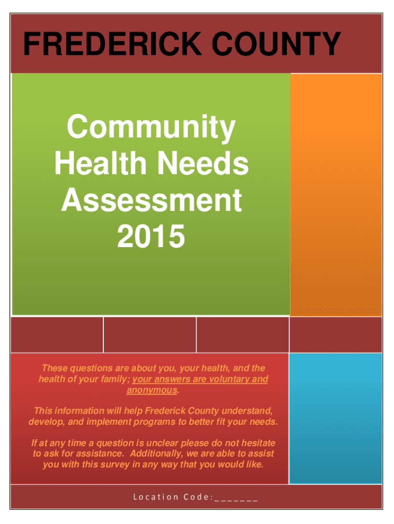FREDERICK COUNTY Community Health Needs Assessment 2015These questions are about you, your health, and the health of your family; your answers are voluntary and anonymous. This information will help