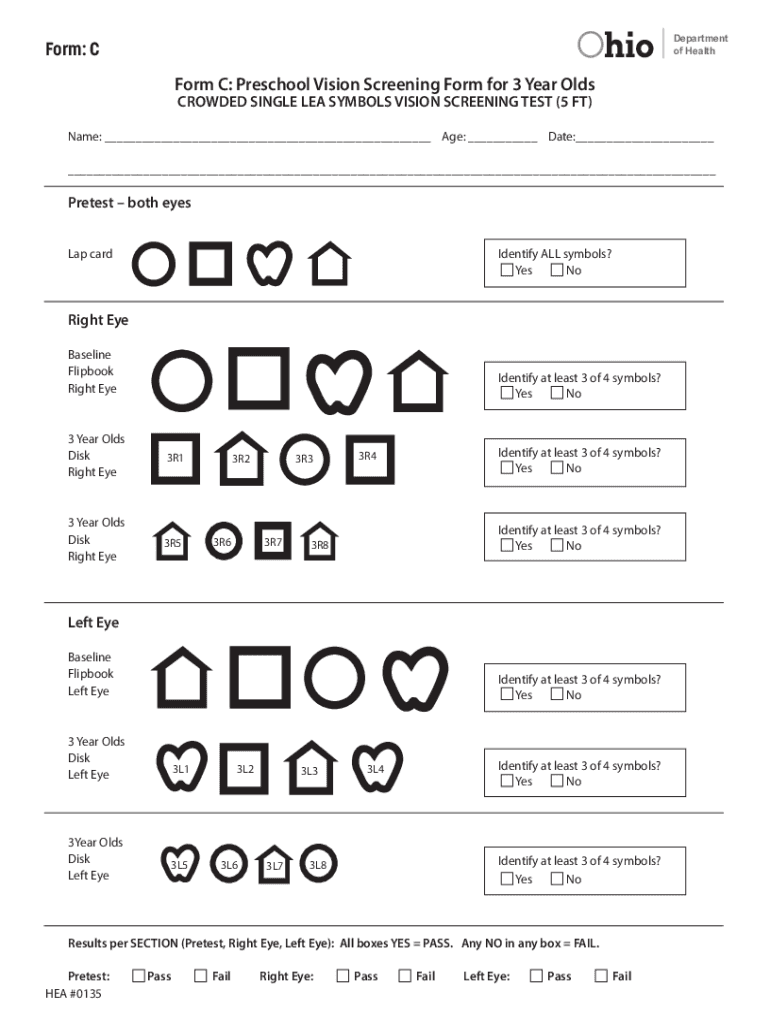 Get the free Form: C Form C: Preschool Vision Screening Form for 3 Year Olds - odh ohio