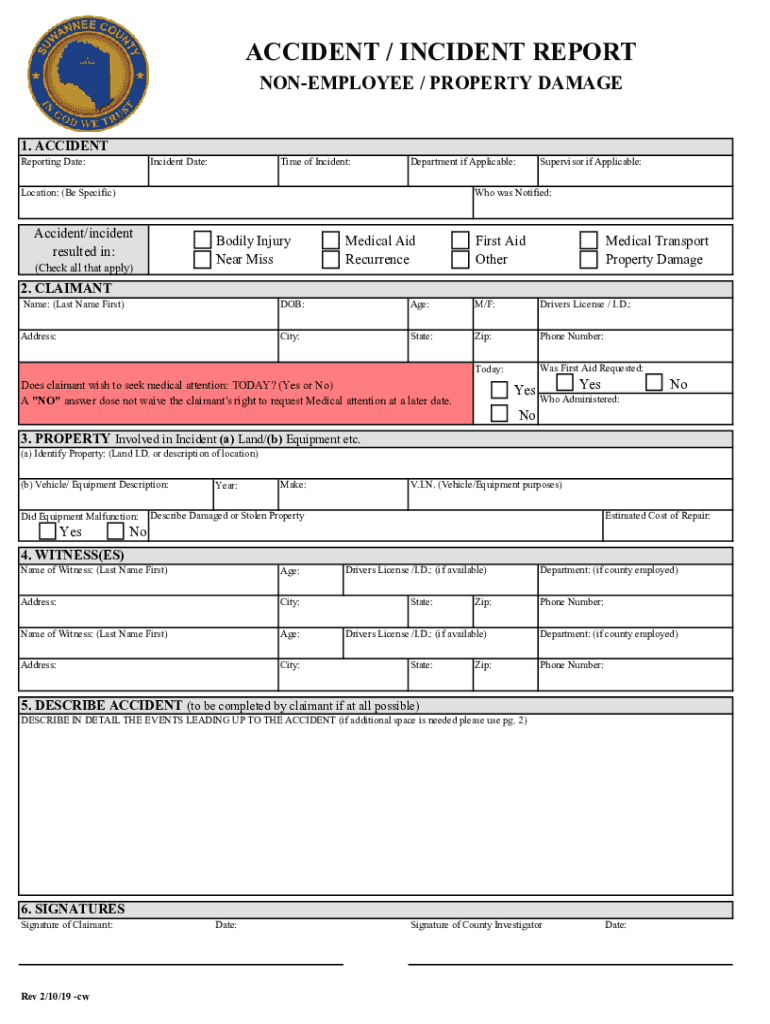 Get the Free Accident Incident Report Form - WordPDFeFormsProperty Damage Incident Reporting: Set...
