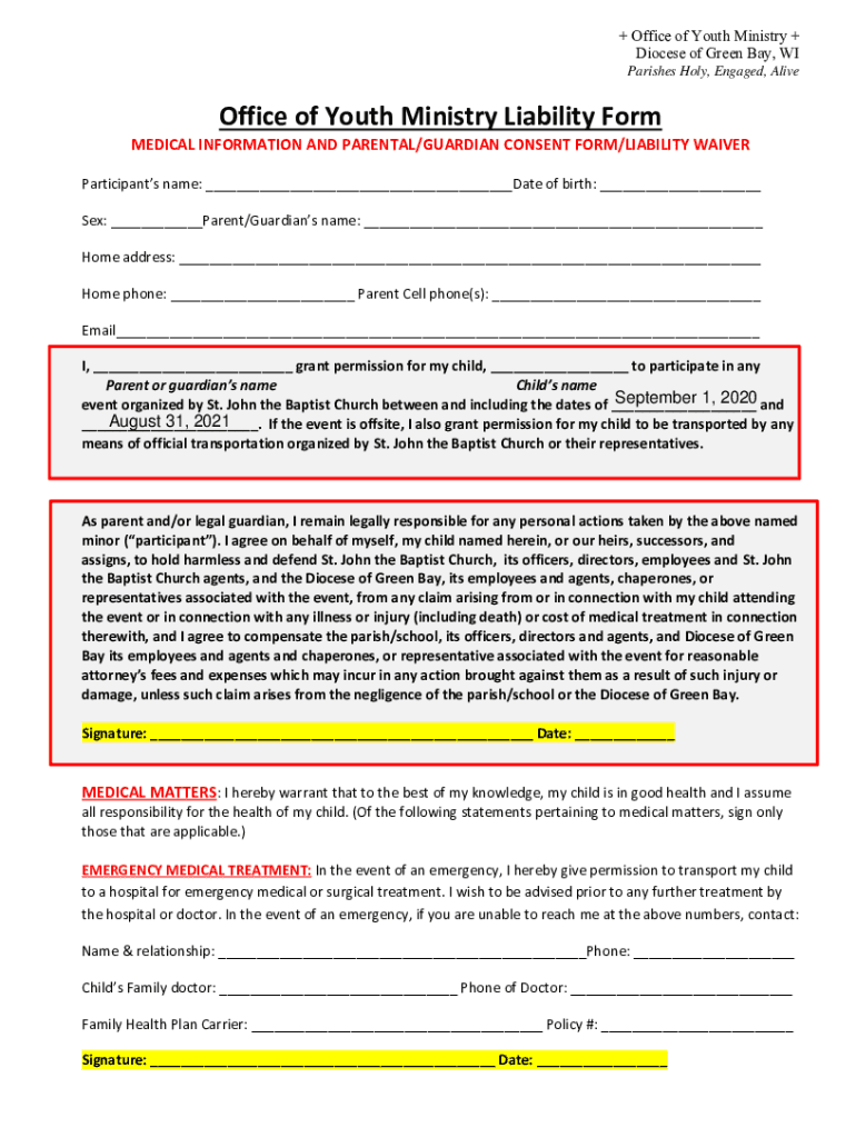 Parishes Holy, Engaged, AliveOfficeofYouthMinistryLiabilityForm