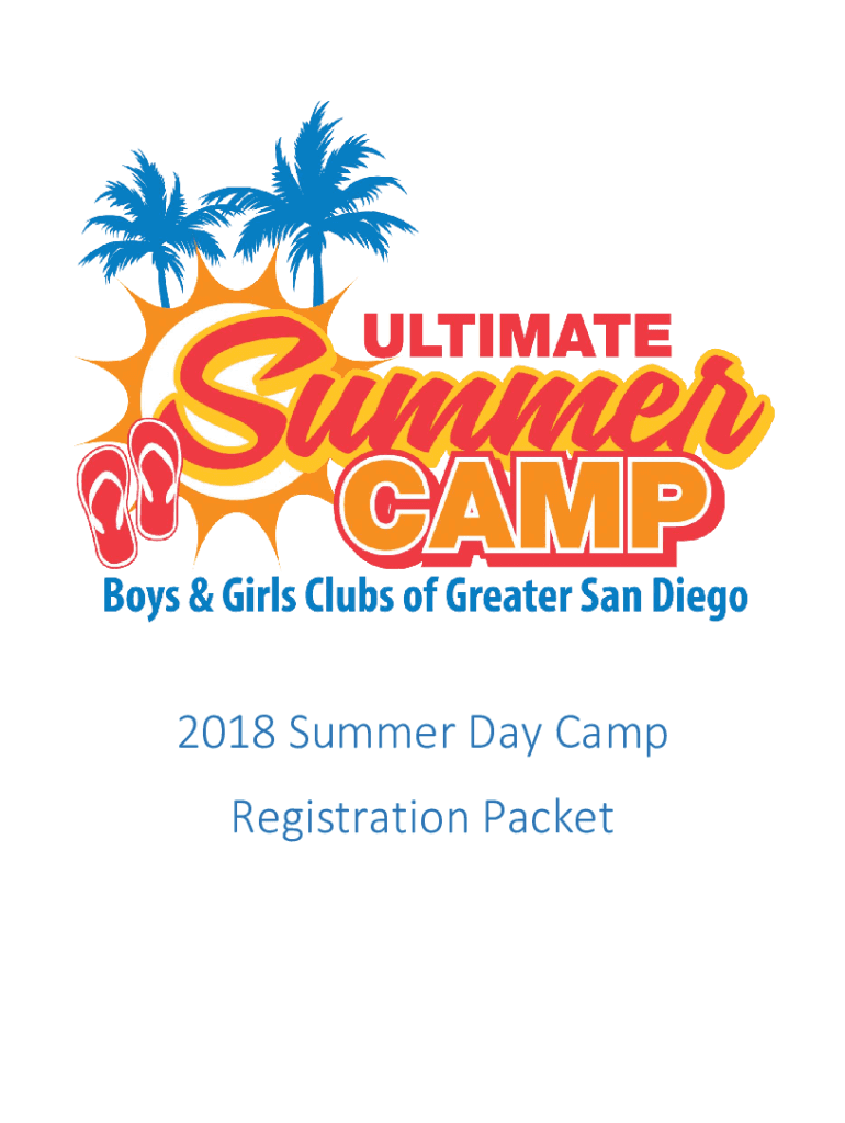 2018 Summer Day Camp Registration PacketWelcome! Welcome to the Boys & Girls Clubs of Greater San Diego, Summer Day Camp Program! We are honored you chose our Club and want to make this a pleasant