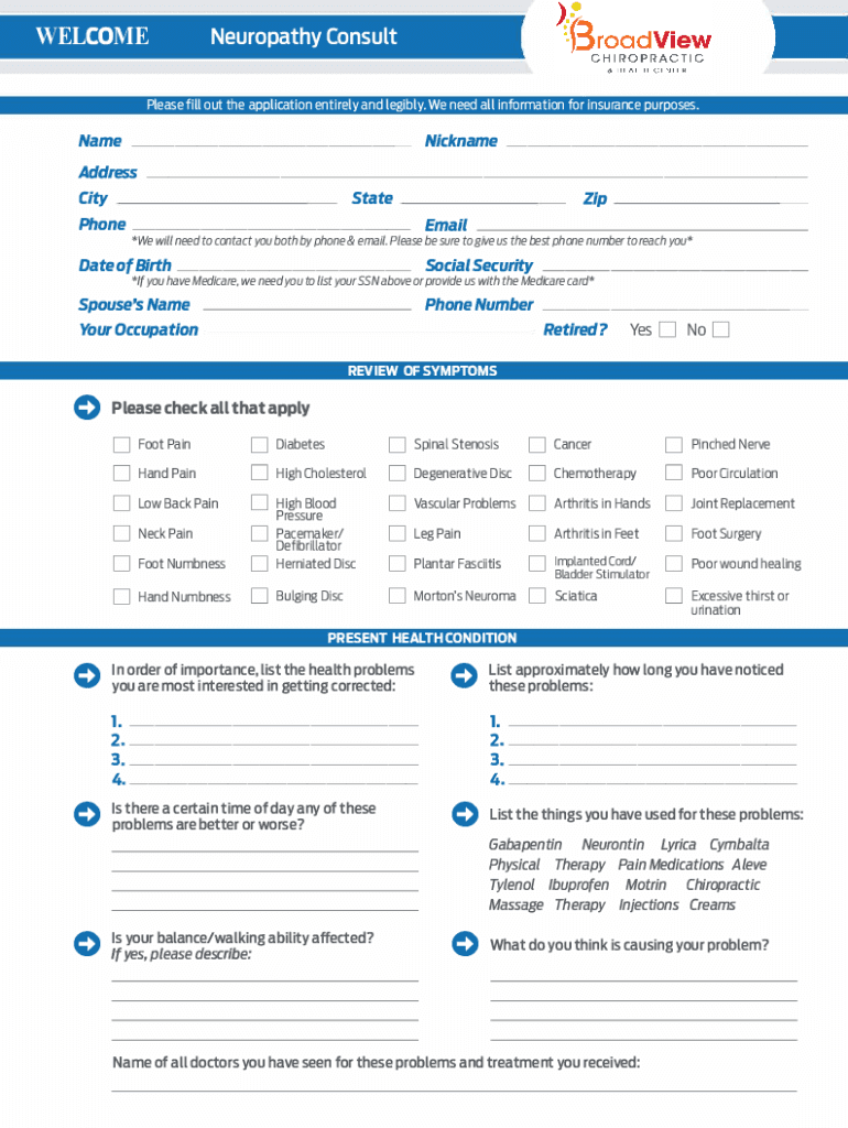 How to fill out neuropathy intake forms 2021