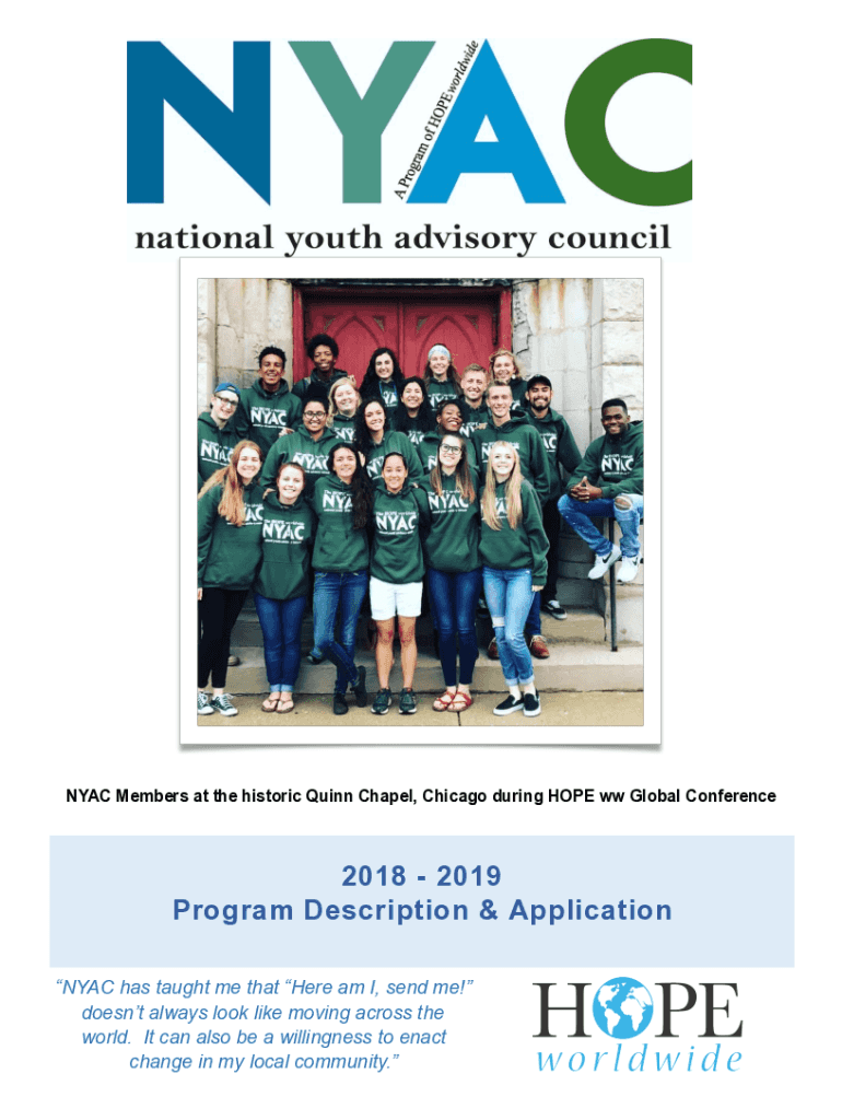 NYC Members at the historic Quinn Chapel, Chicago during HOPE WW Global Conference2018 2019 Program Description & Application NYC has taught me that Here am I, send me! Doesn't always look like moving