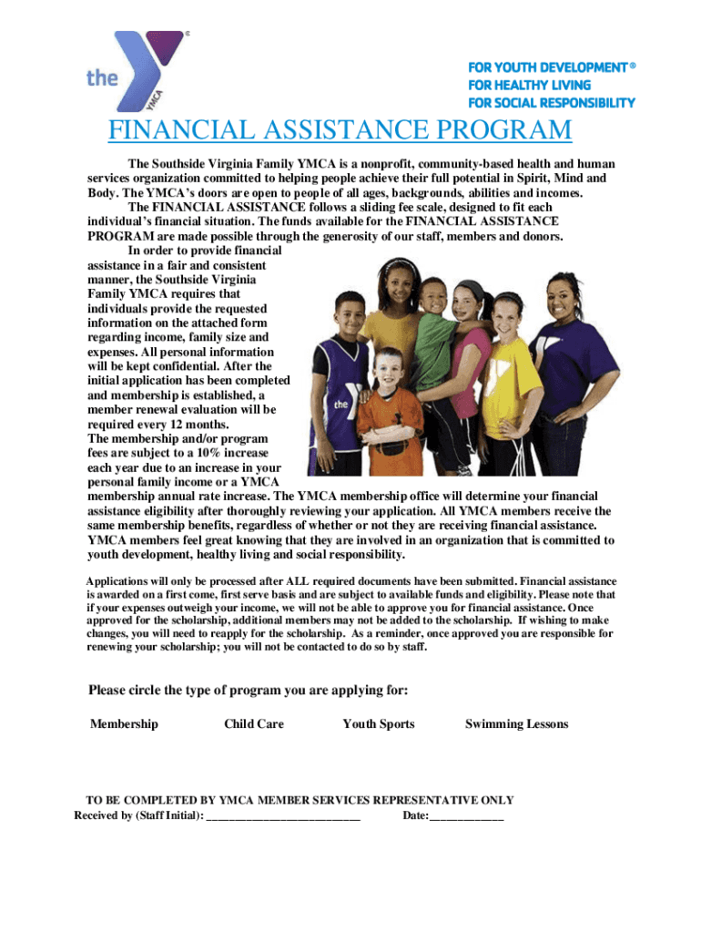 FINANCIAL ASSISTANCE PROGRAM The Southside Virginia Family YMCA is a nonprofit, community based health and human services organization committed to helping people achieve their full potential in Spirit,