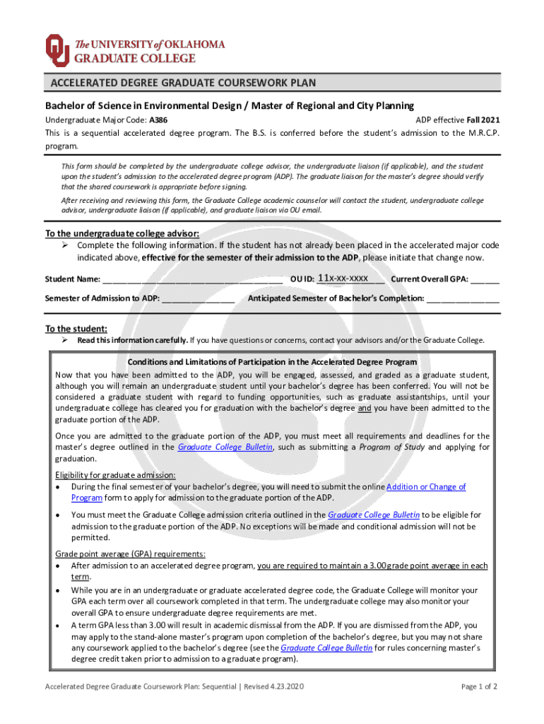 Get the free ou.educontentdamACCELERATED DEGREE GRADUATE COURSEWORK PLAN Bachelor of ...