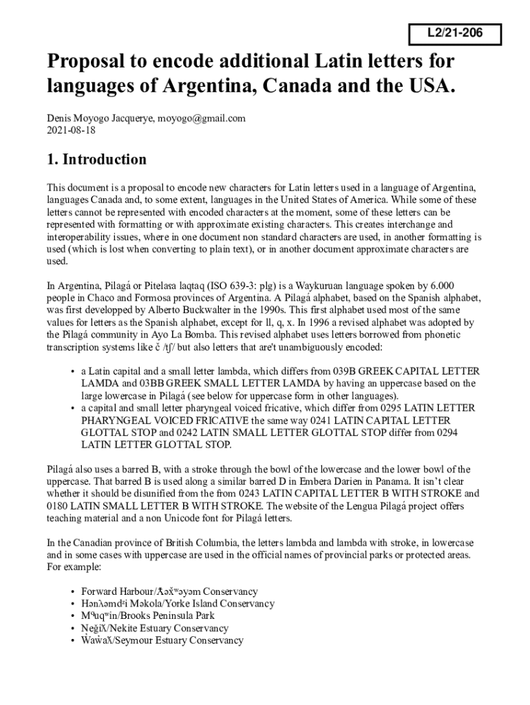 L2/21206Proposal to encode additional Latin letters for languages of Argentina, Canada and the USA. Denis Moog Jacquelyn, moyogo@gmail.com 202108181. Introduction This document is a proposal to encode