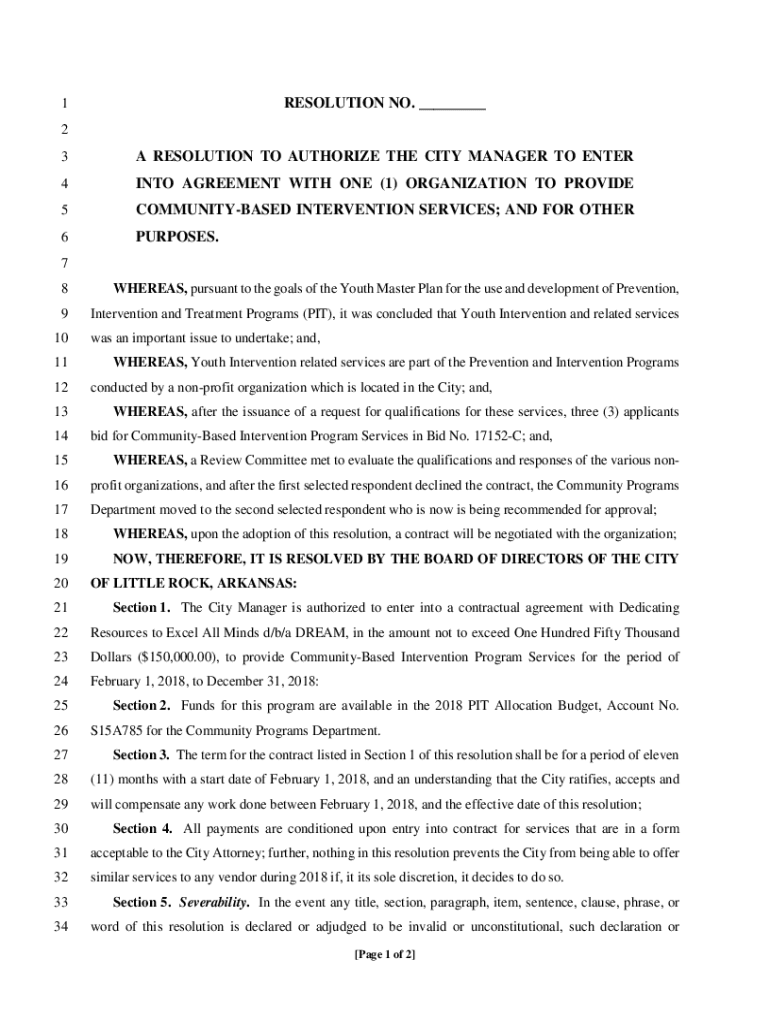 Get the free www.littlerock.govcity-administrationboard-ofRESOLUTION NO. A RESOLUTION TO AUTHORIZ...