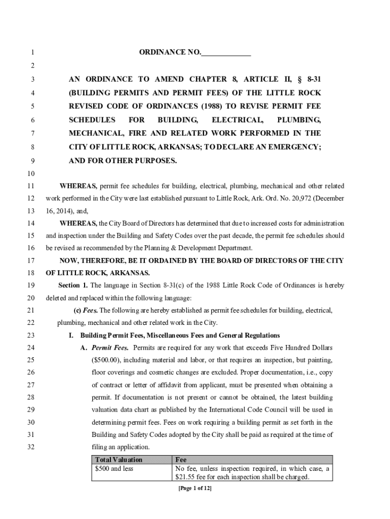 ORDINANCE NO.___1 2 3AN ORDINANCE TO AMEND CHAPTER 8, ARTICLE II, 8314(BUILDING PERMITS AND PERMIT FEES) OF THE LITTLE ROCK5REVISED CODE OF ORDINANCES (1988) TO REVISE PERMIT FEE6SCHEDULES7MECHANICAL,
