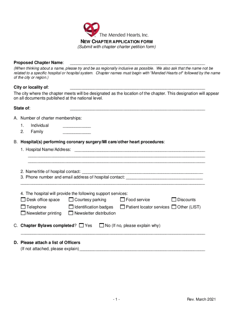 Get the free New Chapter Application Form Mended Hearts