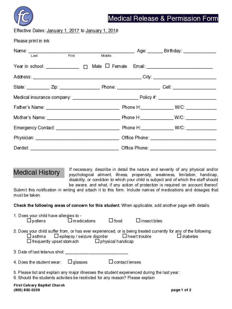Medical Release & Permission Form